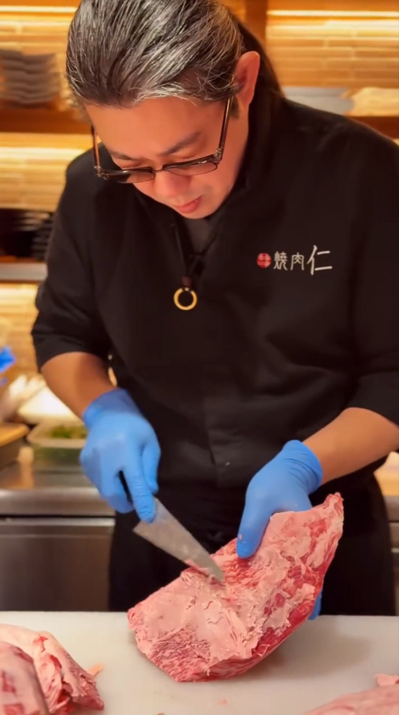 さらに、カウンター席では職人が目の前で和牛を捌く様子をライブで楽しむことができます。