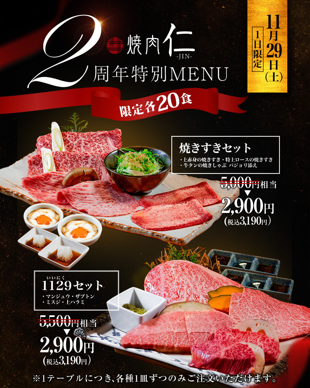 11/29(土)限定!2周年記念🎊究極の和牛を特別価格で🥩